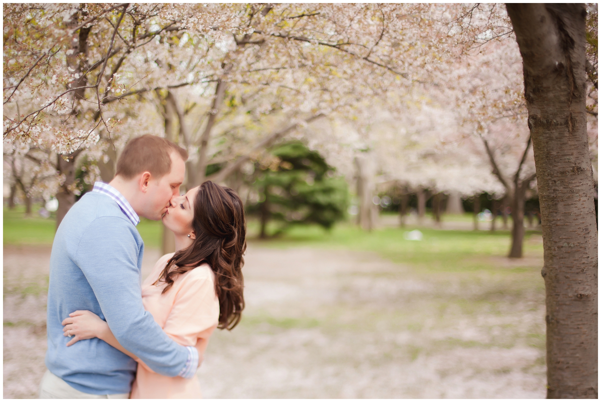 When we arrived and started our cherry blossom engagement session, we were greeted with a sweet wind that made it look like it was snowing around these love birds!