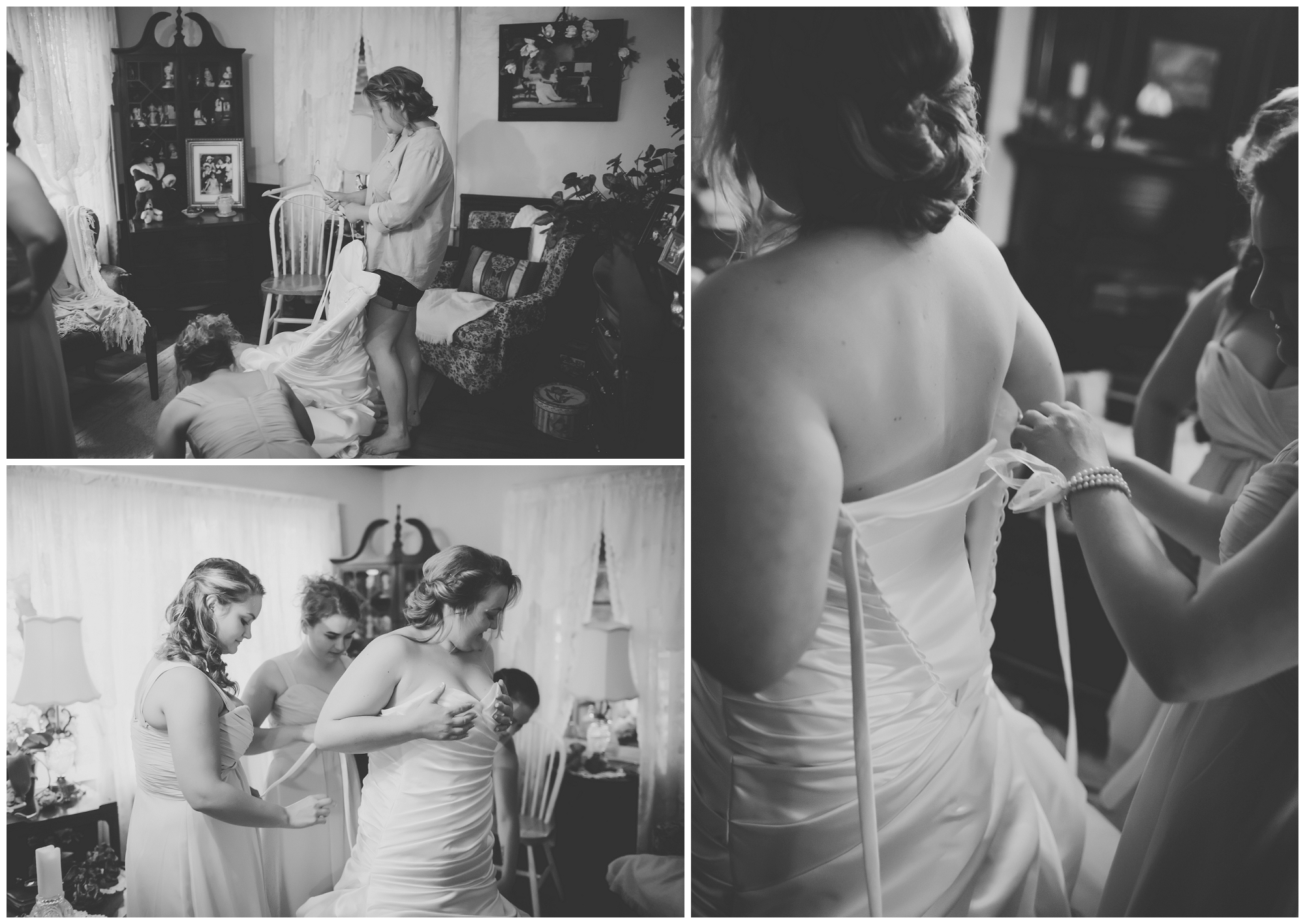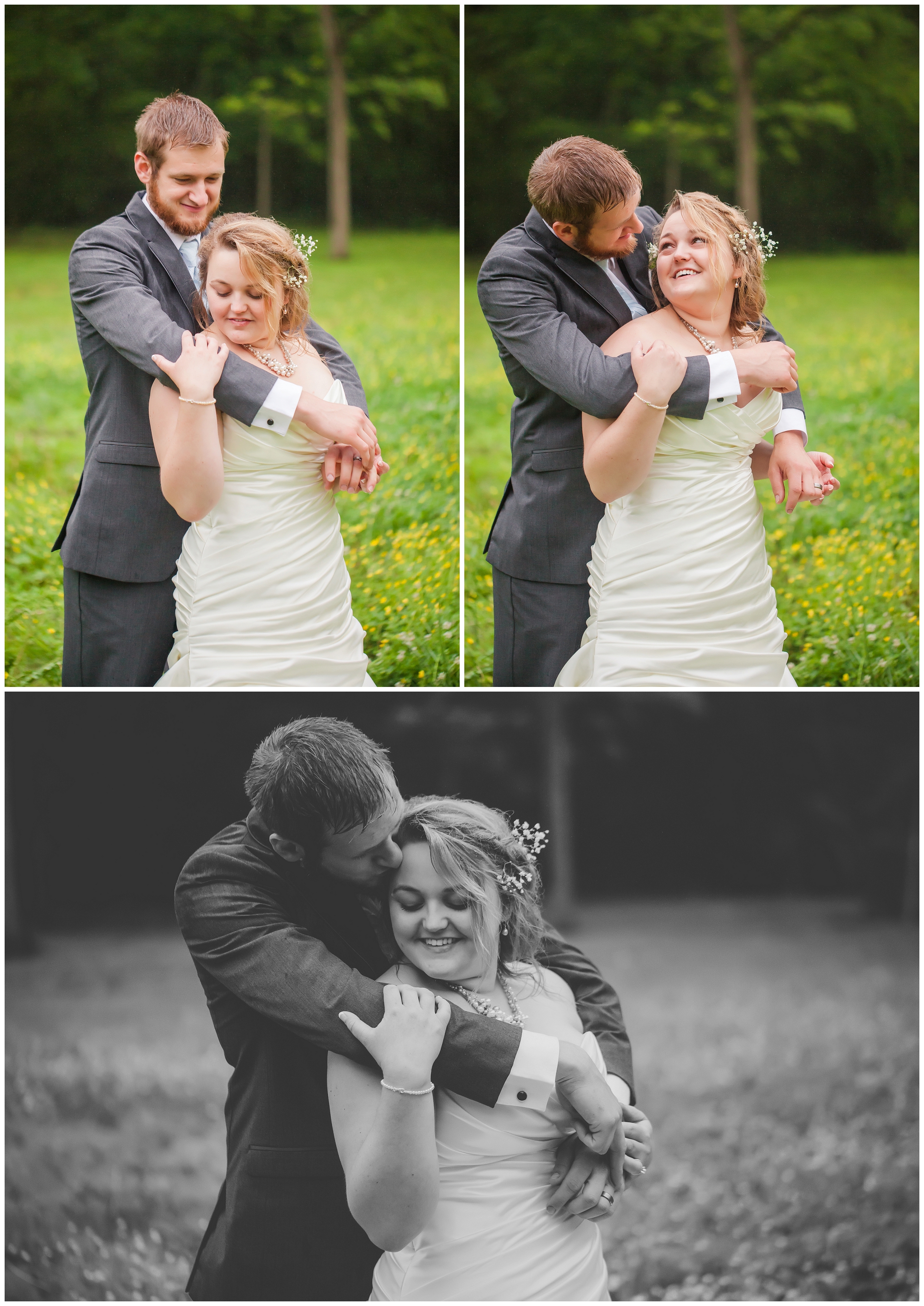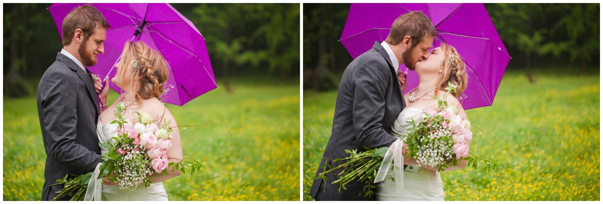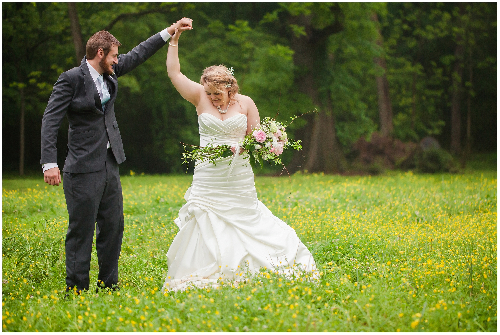 This sweet southern couple – oh my goodness. I showed up to their family home where Lindsey and her bridesmaids were singing and getting ready despite the rain falling outside. “It’s gonna be pretty no matter what!” she said. And she was so right! Once everyone was ready, Lindsey had just assumed that getting photos with her man beforehand wouldn’t happen. The rain had picked up, and even the space covered by trees were drenched. I told her to come out on the front porch, told her to face the left side and close her eyes. After this, I grabbed Kenny, told him to close his eyes, and slowly walked him into a wall through the house and onto the porch to face the right. I had them walk backwards to stand back to back, asked them to hold hands, and then when everything was perfect, I had them both turn around to see each other for the first time. A smile was permanently attached to Kenny’s face as he saw his bride. After they shared their moment together, we all prepared for the ceremony. Lindsey kept peeking out to see how many friends and family members had arrived, and she was giggling with excitement as the seats filled! So many loved ones came out in the rain with smiles on and umbrellas up, and laughter filled the air as they all talked about how beautiful the day was going to be. When the time came, Lindsey’s family took to a microphone, and they played and sang their hearts out as Lindsey walked down the aisle to her groom. And the rest? It’s history. Perfect southern romance history.